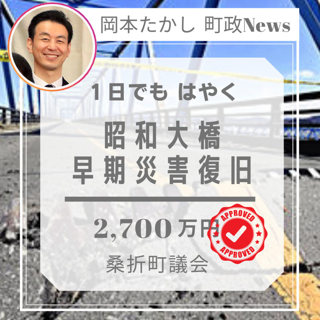 【桑折町議会 臨時議会開催】昭和大橋、伊達崎小学校など、地震被害について取り組みます。復旧に向けた予算審議(お金の使い方)が主なテーマです。しっかりチェックします。