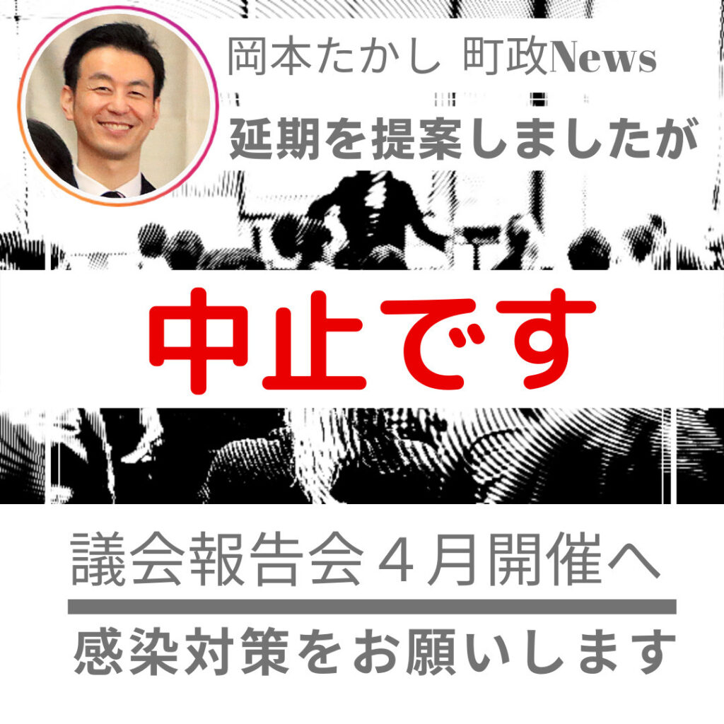 【議会報告会は中止となりました】4月28日開催予定であった議会報告会は感染症防止の点から、中止となりました。ご理解のほど、よろしくお願いいたします。ご意見等がございましたら、お気軽にメッセージいただければ幸いです。