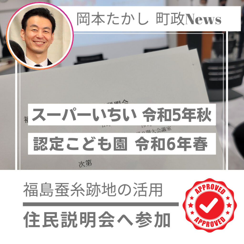 【桑折町にスーパーいちい がオープンする】福島蚕糸跡地の利活用、住民説明会に参加しています。スーパーいちい、認定こども園、アウトドア施設ができる予定です。